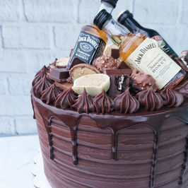 4 bizcochuelos veganos de chocolate o vainilla rellenos de 3 capas de ganache de chocolate con base de dulce de leche de coco/almedras + un mix de frutos secos caramelizados: nueces, almendras, mani. (Praline) Cubierta con ganache de chocolate semiamargo (Águila)